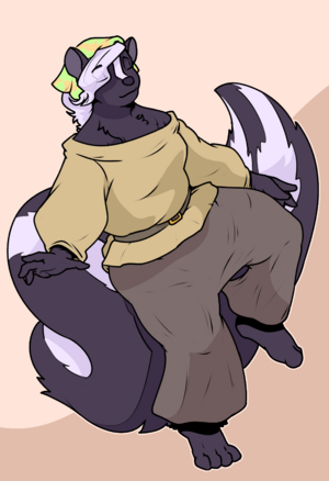 What Right Have I of the Ode clade is an Odist and member of the third stanza. As an up-tree of From Whence, a Rabbi, she is devoutly Jewish. She was forked in 28 when From Whence grew tired of masking neurodivergencies that all of the Odists share, and presents as quite autistic and anxious with stammering speech and both verbal and movement tics. She is a skunk-type Odist and is often seen in loose clothing: linen tunics with woolen trousers.